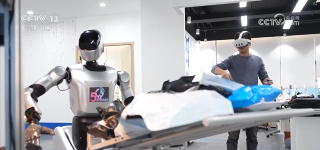 这支年轻的科研团队不仅追求高效,还通过数字孪生技术将各环节实现可视化管理。分拣线上的机械臂可以说是“单一场景”下的“单兵作战”,记者在一家具身智能机器人企业,看到的则是“多元环境”中的“编队练兵”。这个“它”身高1.6米,工作人员正在训练这双“灵巧手”精准抓取不同规格的快递包裹,实现丰富场景下的柔性适配。有了海量训练数据,这些机器人已具备分拣、巡检、搬运等作业能力,量产机型亟待投入实际物流“战场”。