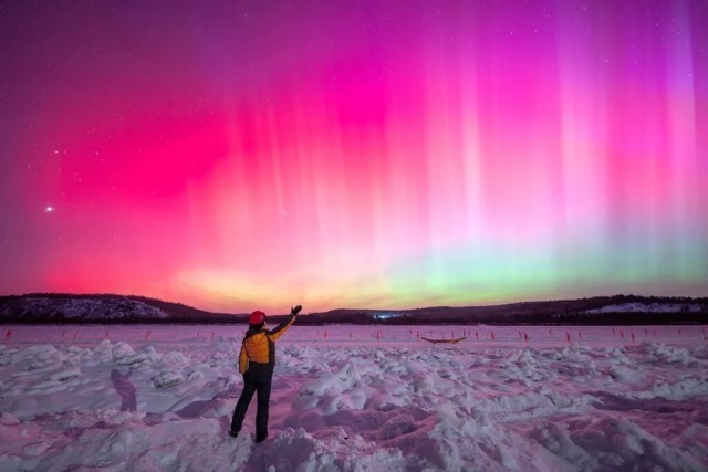 此次磁暴发生的同时,我国多地也上演了极光秀。