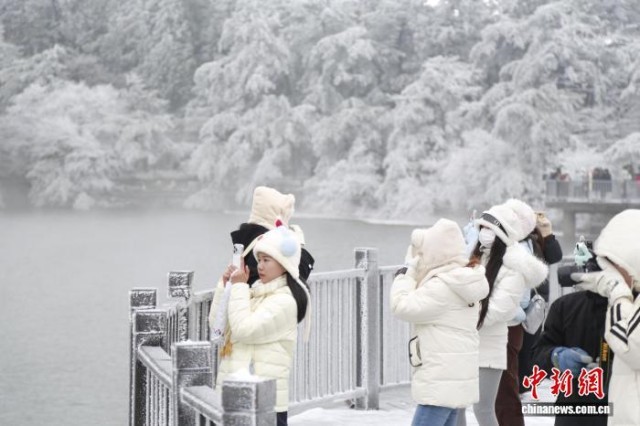 大寒节气已至,江西庐山一场大雪簌簌飘落,站在庐山牯岭镇街心公园远眺,别墅群覆上白雪,雨凇雾凇挂满枝头。不少游客踏雪而来,邂逅南国冬韵。