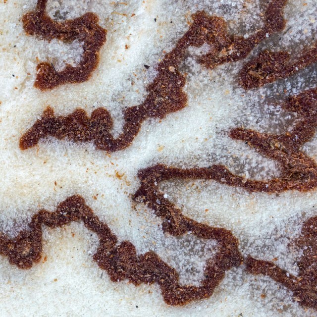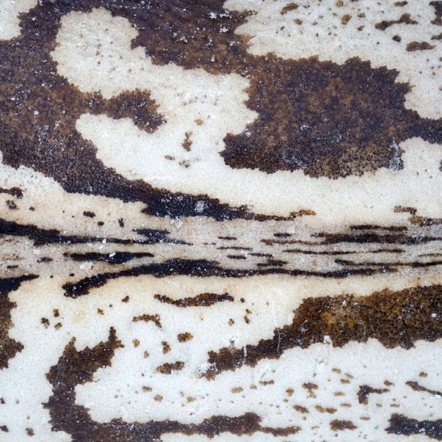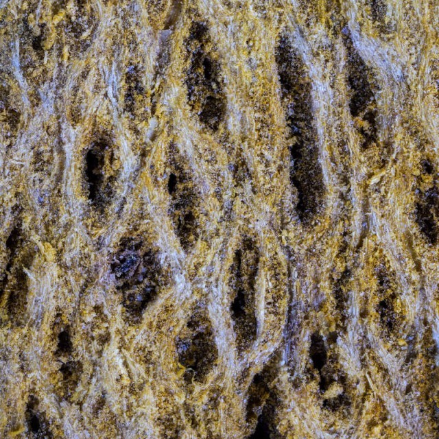 得益于显微摄影堆栈技术的加持,那些依附于药材表面、被药效价值遮蔽的纹路,成为这组组照的绝对主角。镜头之下,青风藤的蜿蜒导管似篆书笔意,勾勒出草木生命的流动轨迹;虎杖的斑驳切面如古画绢帛上的皴法,藏匿着岁月沉淀的色韵;草豆蔻的褶皱则像山水画中的层叠峰峦,在微观尺度重现“平远”“高远”的构图哲学。