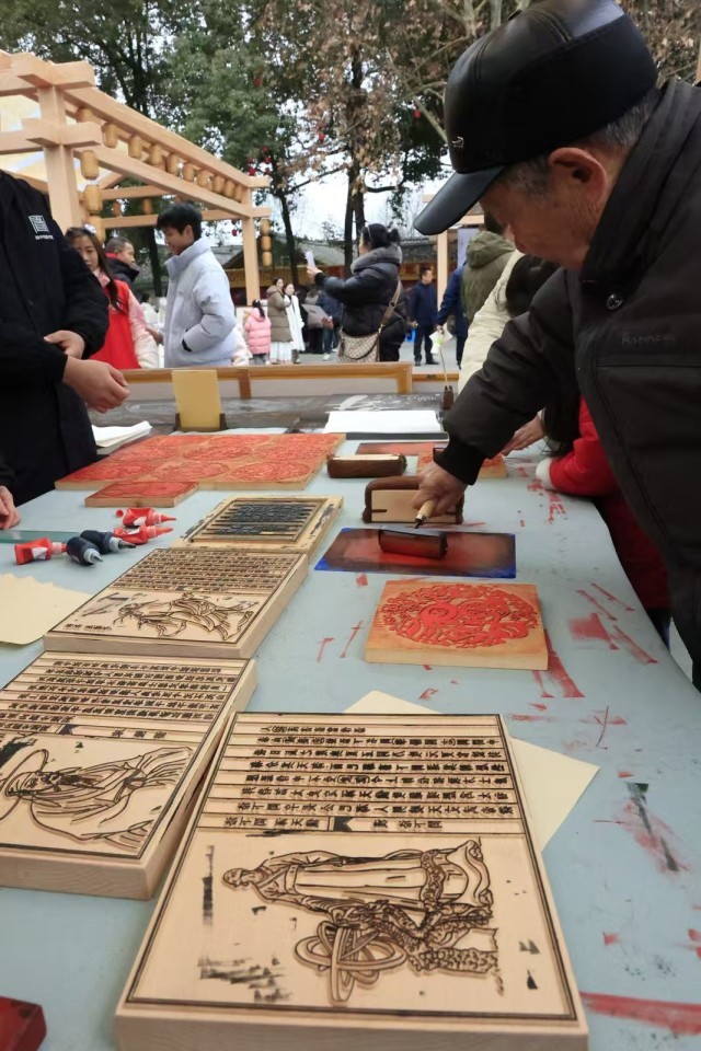 市民、游客在阆中古城体验非遗代表性项目。