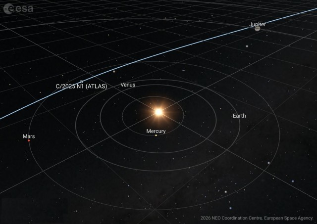 彗星3I/ATLAS穿越太阳系内侧的轨迹示意图。图片来源:ESA NEOCC 欧洲空间局(ESA)行星防御办公室下属的近地天体协调中心(NEOCC)