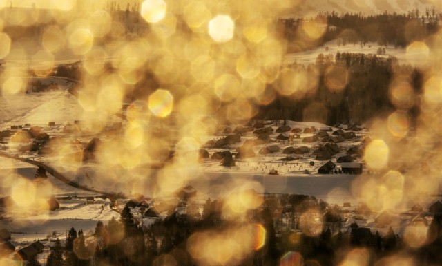 日出时分拍摄的新疆阿勒泰禾木村。新华社记者 费茂华 摄