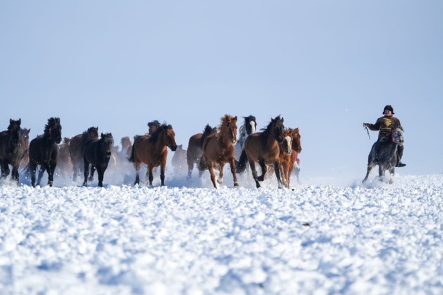 牧民马蹄踏碎雪域寂静
