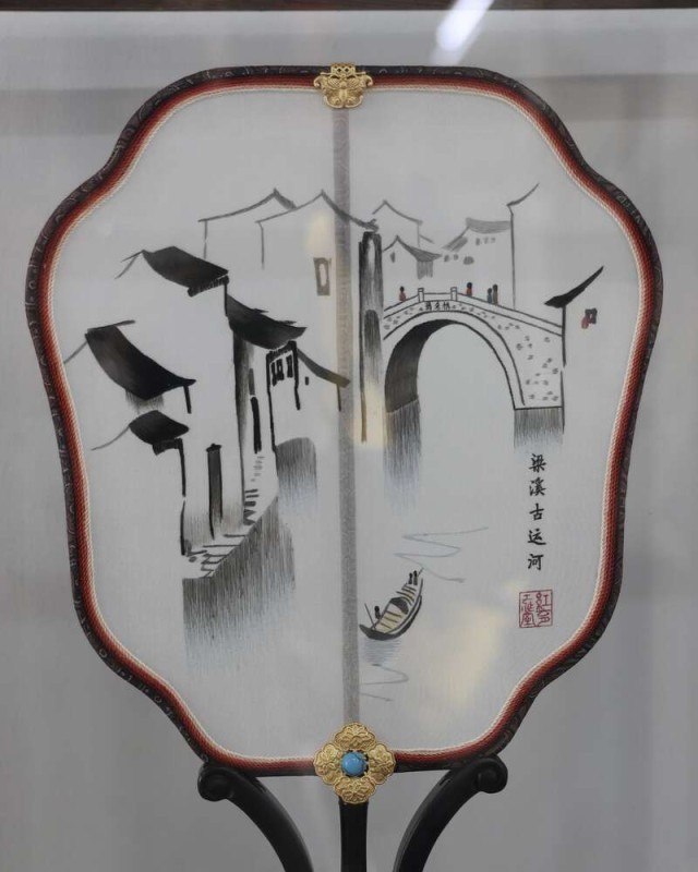 中国青年报客户端讯(西交利物浦大学 冯好 中青报·中青网记者 张仟煜)一柄团扇,半幅烟水。当绣娘指尖的丝线轻轻穿过素绡,无锡古运河畔的风韵便在小小的扇面上徐徐漾开——粉墙黛瓦顺着水巷蜿蜒,一叶扁舟静泊在清名桥的拱影里,独属于江南的温润在这一针一线之间流转、沉淀。于是,古运河和精微绣的故事,就这样在咫尺丝绢上悄然展开了。