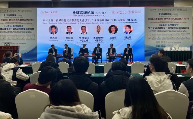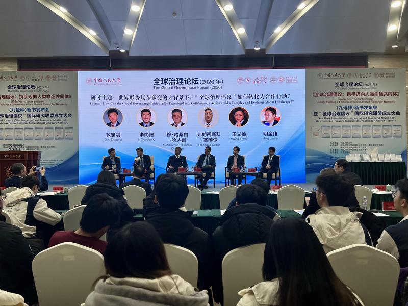中国青年报客户端北京1月25日电(中青报·中青网记者 赵安琪)在全球局势持续震荡、地缘冲突与治理赤字交织的背景下,国际社会对全球治理的未来走向愈发关注。1月24日,“全球治理论坛(2026年)”在中国人民大学举行。多国驻华使节、国际组织代表与中外专家学者齐聚北京,围绕“全球治理倡议如何转化为合作行动”展开深入讨论,为构建更加公正合理的全球治理体系、推动人类命运共同体建设凝聚共识。