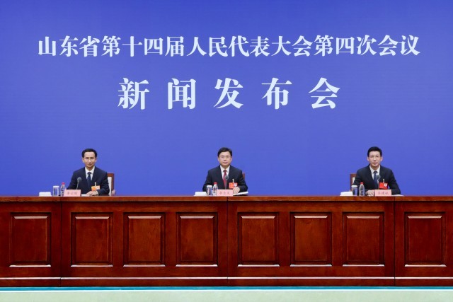 1月26日下午召开的山东省十四届人大四次会议新闻发布会现场。(山东省人民政府新闻办公室供图)