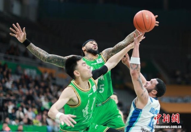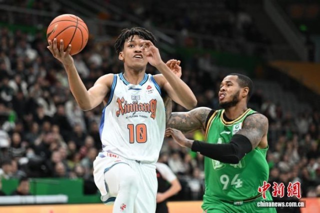 资料图:CBA常规赛,辽宁队(右)对阵新疆队。中新社记者 于海洋 摄