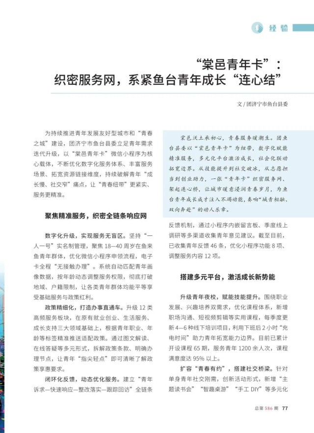 “棠邑青年卡”:织密服务网,系紧鱼台青年成长“连心结”