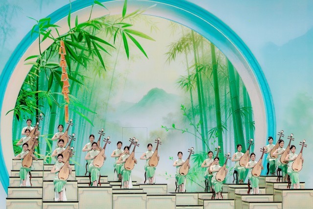 主会场节目融汇创新创意表达,让古韵国风以更具互动性、共情力和时代感的方式鲜活登场。歌咏创意秀节目《贺花神》以“花”为意象,通过AI生成影像与实景舞台扩展技术,打造“一月一人一景,一花一态一观”的视觉盛景,呈现四季更迭的自然意趣,诠释生生不息的美学意蕴。舞蹈《丝路古韵》由清华大学美术学院教授常沙娜担任艺术顾问,把千年壁画“搬”上舞台,乐舞华美曼妙,带观众踏上古丝绸之路的美妙旅程。歌曲《小家年年》融入苏州评弹的婉转唱腔,吴侬软语间唱出“小家”热气腾腾、“大家”蒸蒸日上的幸福生活和对未来的美好期许。戏曲节目将京剧、评剧、越剧、粤剧、豫剧等经典剧目融合创编,老中青幼四代同台演绎,唱出春晖满梨园的大美景象。