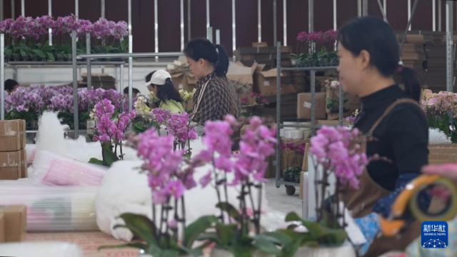 临近新春佳节,年宵花市场已经开始逐渐升温。这家公司近期以来每日都有几千件快递发出,有五六十名居住在周边、灵活就业的工人每天都忙碌着打包。