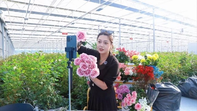 智能温室中 主播带货售花