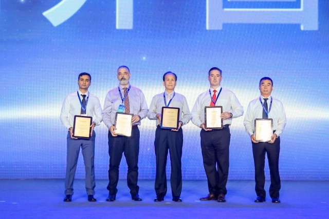 阿德里安(右二)获得2023年淄博市“杰出外国专家”的荣誉(资料图片)