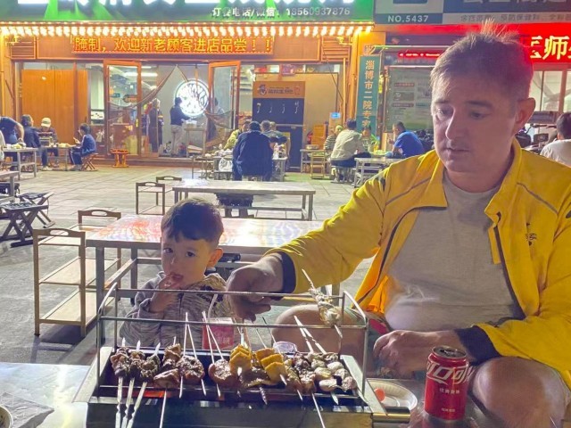阿德里安:我们每周都会吃一两次淄博烧烤,甚至会在烧烤时和朋友们见面。最近,我们订购了烧烤外卖,我还会加入自己的一点小巧思——会在烧烤上放一些芥末、一点泡菜或类似的东西。但我们都喜欢,每个人都喜欢,孩子们也喜欢。