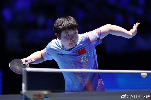 2月8日,第35届国际乒联-亚乒联盟亚洲杯,孙颖莎在决赛中。图片来源:亚乒联官方微博