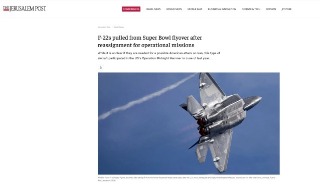 美军F-22战机缺席“超级碗”,外界猜测或与中东局势有关