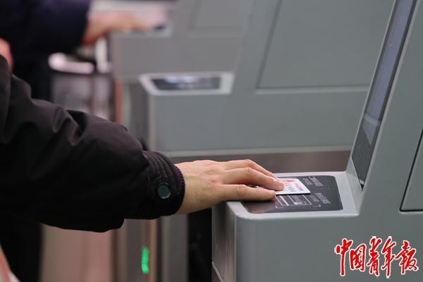 2月2日,北京西站,旅客刷身份证检票进站。中青报·中青网记者 陈思阳/摄