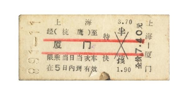 1989年的硬板火车票。厦门火车站供图
