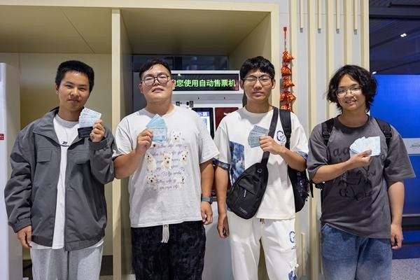 2025年9月30日,浙江湖州,几名年轻旅客在湖州站候车大厅展示纸质火车票。当日,一些旅客趁返程的间隙,特地把“纸质票”打印出来留作纪念。从2025年10月1日起,铁路客运全面使用电子发票,不再提供纸质报销凭证。视觉中国供图