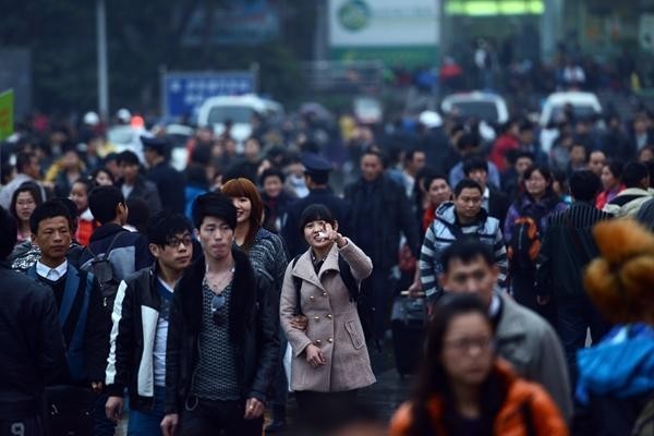 2013年春运,广东广州火车站广场上的人群。
