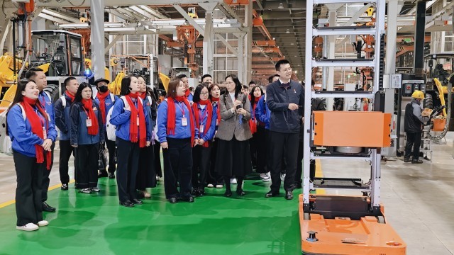 2月9日,越南青年代表在柳工智能制造车间考察。中青报·中青网记者 谢洋/摄