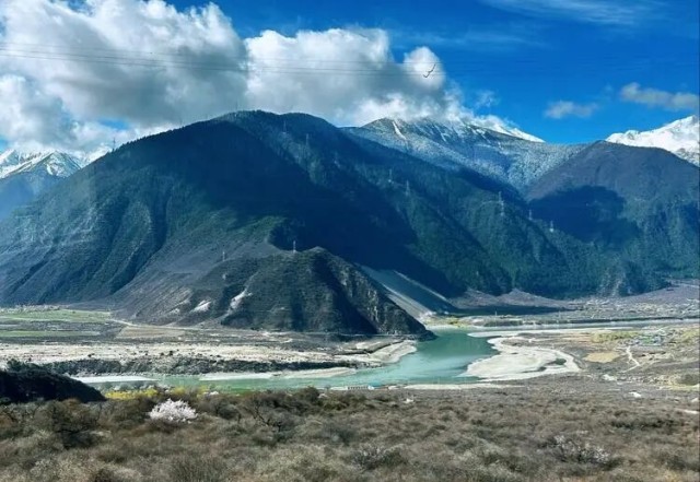 透过车窗,我看到的是雪山连接着白云,草地包裹着河滩,大地养育着生命,晚霞抚慰着山河。