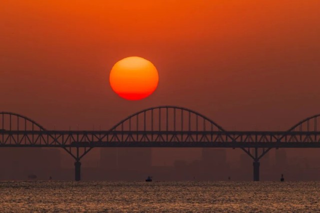 长河铁龙落日圆。