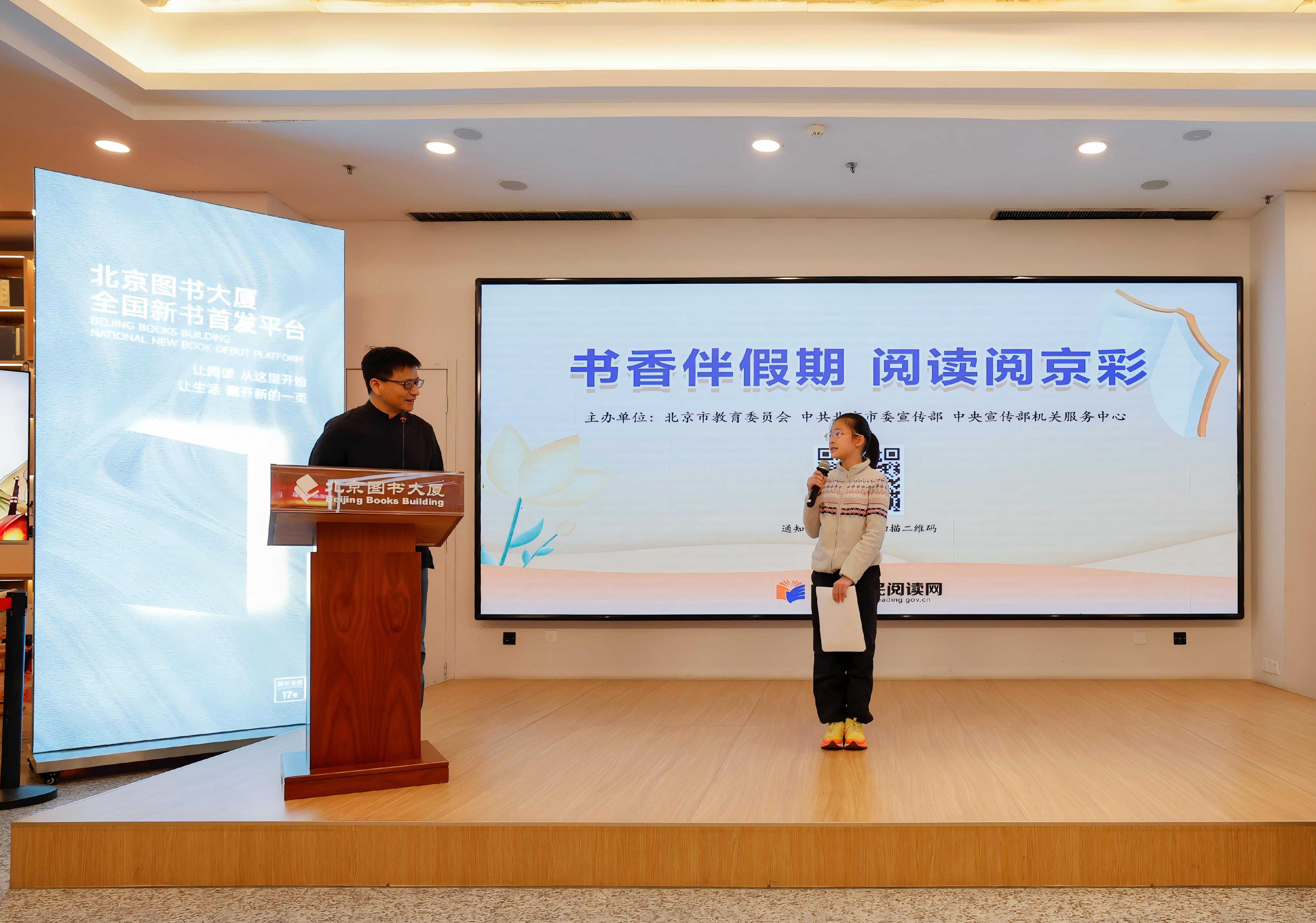 为深入贯彻习近平总书记关于未成年人思想道德建设的重要论述,落实《全民阅读促进条例》及全国青少年学生读书行动相关要求,进一步推进由北京市教育委员会、中共北京市委宣传部、中央宣传部机关服务中心组织的北京中小学生“书香伴假期,阅读阅京彩”主题活动的深入开展,2月12日,“书香伴假期,阅读阅京彩”首次主题宣传推广活动在北京图书大厦启幕。