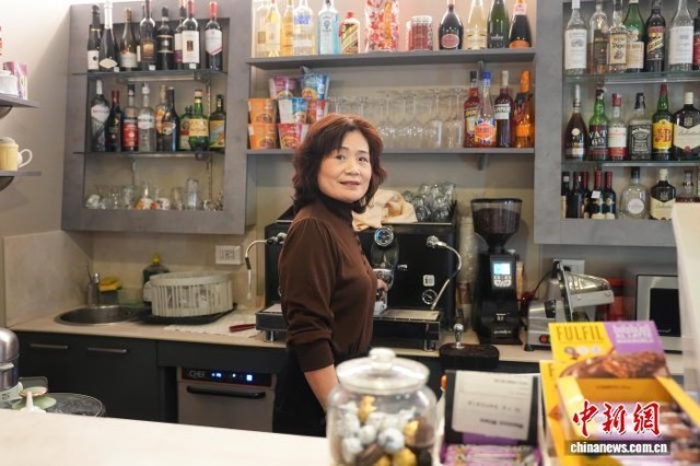 当地时间2月13日,意大利米兰,华人老板陈晓丹在帕尔马酒店前台。中新社记者 单璐 摄