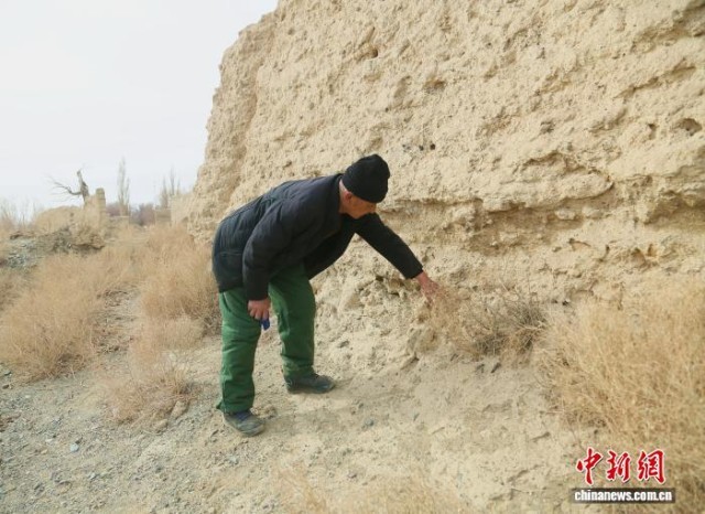 中新网新疆新星2月13日电 (史玉江 王晓燕)“这土坯是戍卒用戈壁红土加芦苇秆建造的烽燧,能扛住百年风沙。”春节前夕,新疆新星市兼职文物守护员买买提·艾力在了墩烽燧方形土台边,轻抚着呈梯形的墙面说,“这是文化根脉,我要一辈子守护它。”
