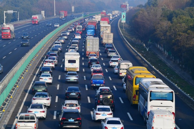 2026年2月13日拍摄的京沪高速江苏无锡段的车流。新华社发(还月亮 摄)