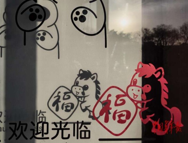 2月14日,北京鼓楼,某文创店玻璃门上可爱的小马图案。中青报·中青网记者 陈剑/摄