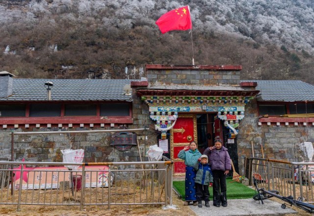 2026年2月5日,玉麦乡的小朋友在家门口合影。新华社记者 丁增尼达 摄