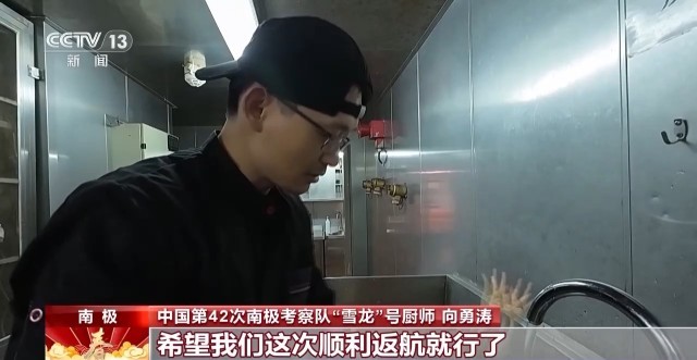 中国第42次南极考察队“雪龙”号厨师 向勇涛:希望大家都身体健康,希望我们这次顺利返航。