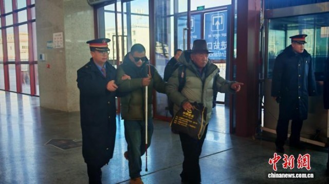 图为日喀则站客运工作人员帮扶盲人进站候车。拉萨车务段 供图