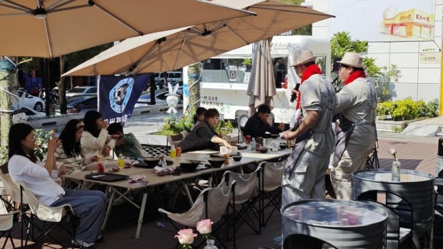 店里主营饺子,也有两三种面食。门外小广场上还有辆咖啡车,可以做30多种饮品。
