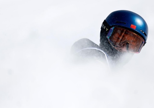 2月18日,苏翊鸣在男子坡面障碍技巧决赛比赛中。新华社记者 夏一方 摄