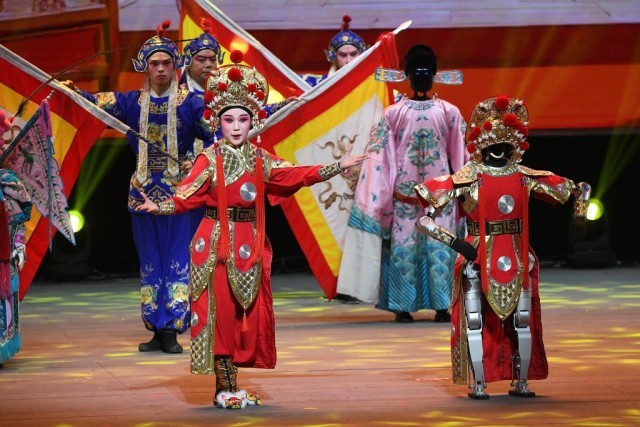 活动期间,一场“人机共舞”的演出线上直播观看突破10万人次。机器人“旺来”艺术团融合厦金宋江阵、布袋木偶戏等非遗,与真人武者过招、变化阵型。