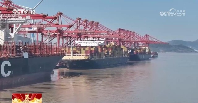 陆路班列接续开行,海上和空中的贸易链接同样密切。宁波舟山港在春节期间装卸作业24小时不间断。大年初一到初六,宁波舟山港完成集装箱吞吐量超78万标准箱,同比增长超17%。