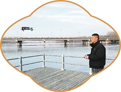 腊月二十八,我沿着河堤徒步至院校街大桥,开启了无人机巡航。无人机刚升空不久,我透过屏幕发现了一处半隐在水面下的渔网,这是典型的非法渔具。我立刻截图定位,通过巡河APP将问题上传到“县域数字河湖平台”,整个过程不过几分钟。