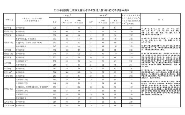 教育部2月28日发布《2026年全国硕士研究生招生考试考生进入复试的初试成绩基本要求》(国家分数线)。各招生单位根据《2026年全国硕士研究生招生工作管理规定》,在国家分数线的基础上,自主确定并公布报考本单位的考生进入复试的初试成绩要求及其他学术要求。