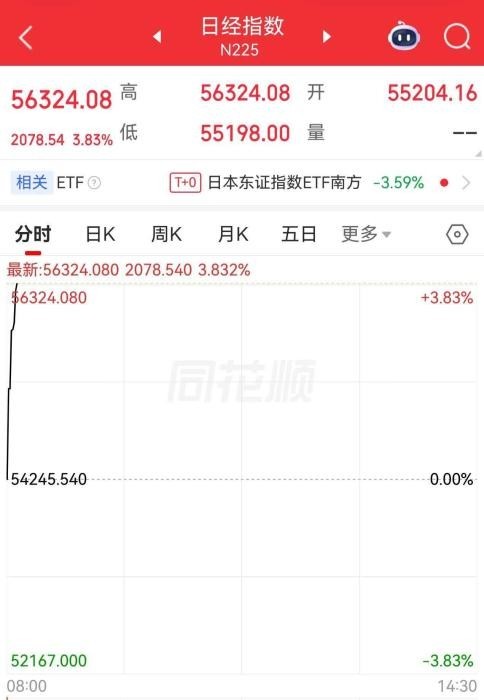 中新网3月5日电 3月5日,日经225指数开盘涨1.77%,随后涨幅扩大至超4%。韩国综合股价指数(KOSPI)开盘涨3.09%,后涨幅迅速扩大至超11%。