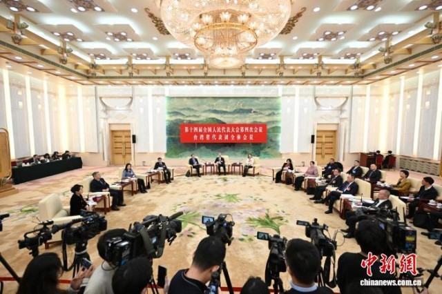 3月8日,十四届全国人大四次会议台湾代表团在北京人民大会堂举行开放团组会议。 中新社记者 赵文宇 摄