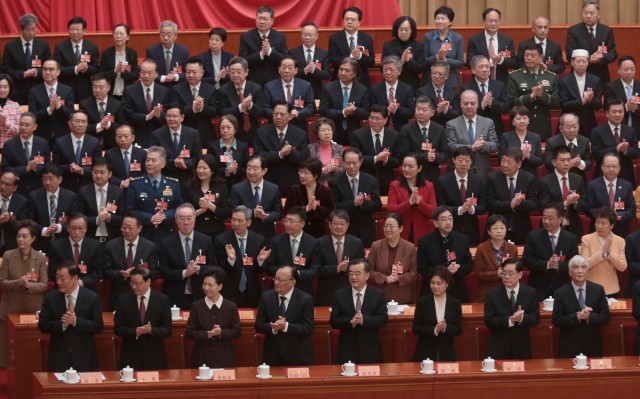 3月11日上午,北京人民大会堂,全国政协十四届四次会议闭幕会现场,参会人员起立鼓掌。中青报·中青网记者 陈剑/摄