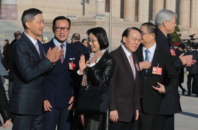 3月11日上午,北京人民大会堂前,全国政协十四届四次会议闭幕会开始前,委员们合影留念后鼓掌祝贺。当日,全国政协十四届四次会议在圆满完成各项议程后闭幕。中青报·中青网记者 陈剑/摄