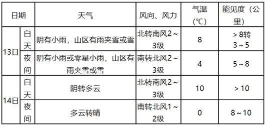 13日至15日较强冷空气继续影响我国,西南地区东部及黄淮以北大部地区将出现大风降温,西北地区、华北、东北地区等地有雨雪天气;13日新疆南部、内蒙古西部、甘肃西部、青海北部、宁夏中北部、陕西北部等地有扬沙或浮尘天气,局地有沙尘暴或强沙尘暴;13日夜间至14日早晨时段,河北西南部、山西南部、河南中部、江苏中南部、四川盆地西部等地部分地区有大雾。关注雨雪、大风降温、沙尘、大雾等天气对交通出行的不利影响。