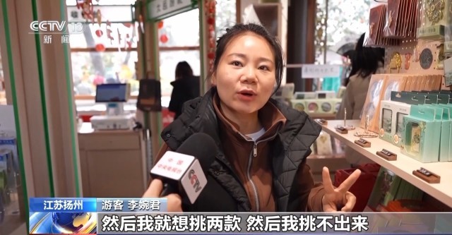游客 杨琴:春天在我们的印象里是转瞬即逝,但是有这样的文创,我们就可以把春天留住。