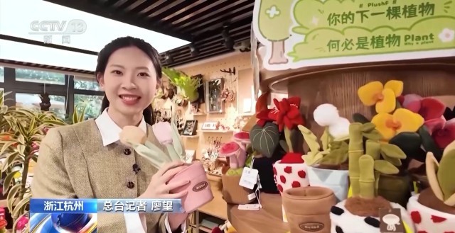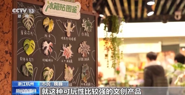 某文创店老板 郭晨:这些带花卉的产品,都是我们这边比较畅销的产品,销售额比去年涨了大概30%。