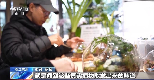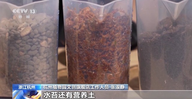 杭州植物园文创旗舰店工作人员 张淑静:像这样一个植物微景观,我们会需要依次铺上碎石、水苔还有营养土,然后选择自己喜欢的植物进行搭配。