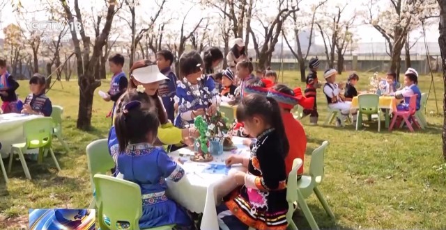 今年,当地围绕盛开的梨花,推出了特色研学游。孩子们用彩泥制作的梨树,也花开满枝。